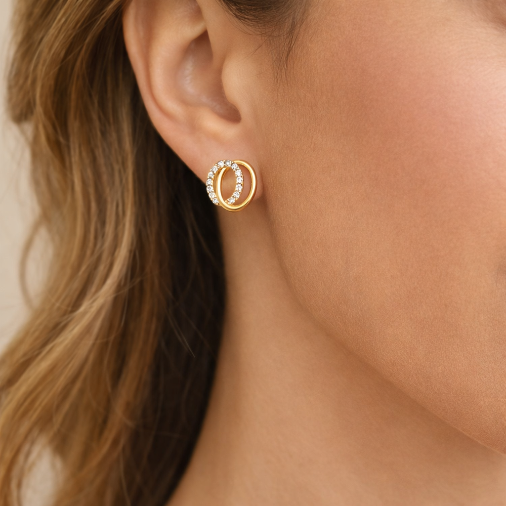 Elegant with a modern edge, our 9ct Gold Double Oval CZ Stud Earrings are a refined addition to any jewellery collection. Crafted from solid 9-carat gold, these studs feature two beautifully cut oval cubic zirconia stones arranged in a sleek vertical design. The double-oval silhouette adds subtle length and sparkle, catching the light with every movement.