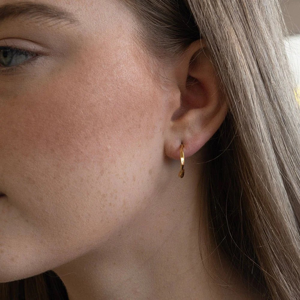 Add a modern, sculptural touch to your jewellery collection with the Angelica Ribbon Twist Hoop Earrings. Crafted from 18ct gold plated 925 sterling silver, these hoops feature a soft twisted ribbon design that catches the light beautifully from every angle.